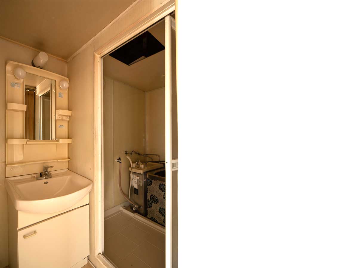 古いタイプのバランス釜の浴室。