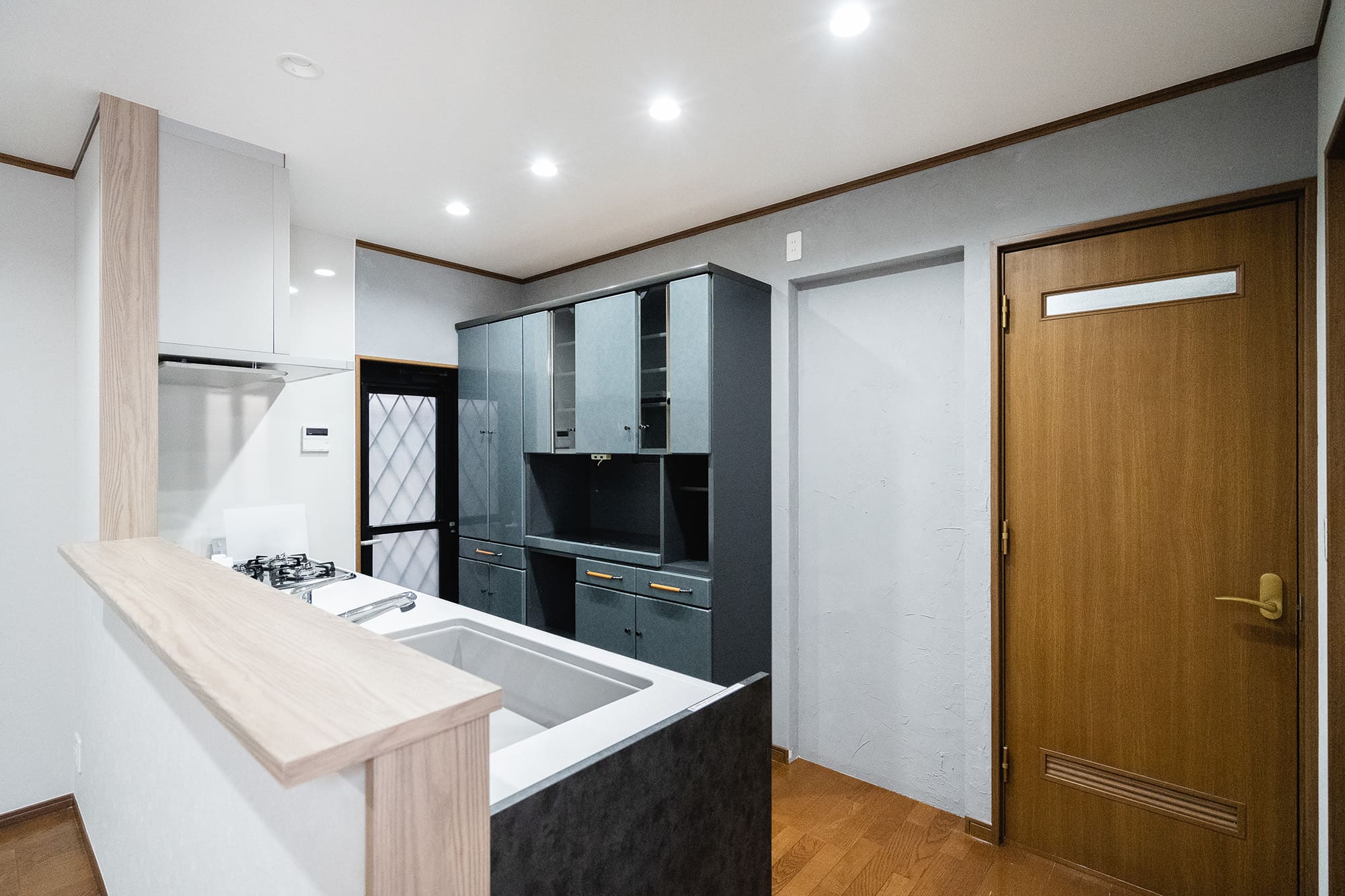 元々あったシーリングライトをダウンライトに変更することで、より細部に光が行き渡るようになりました。
