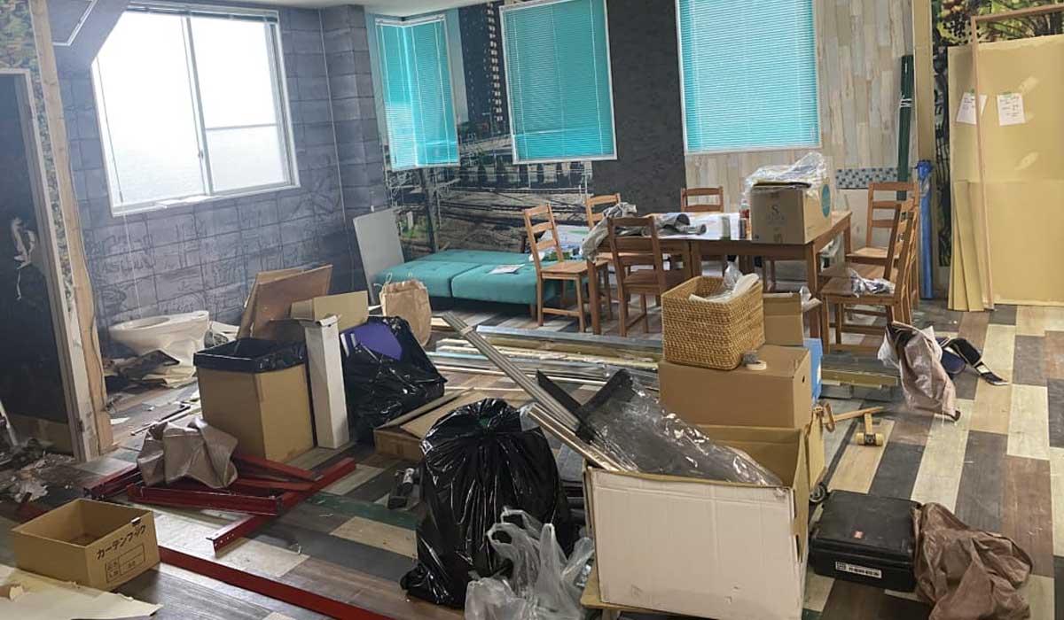 依頼主(Boss)からのご要望は、全員で入ることができて席数も確保、社内外でのセミナーやイベントやの際にも使用でき、なおかつ自社取り扱い商品をふんだんに使ってショールームの役割を兼ね、おしゃれなカフェのように一目見た途端「超オシャレですごい!」と思ってもらえるようにして欲しいという何ともお客様らしい理想の高いものでした。
